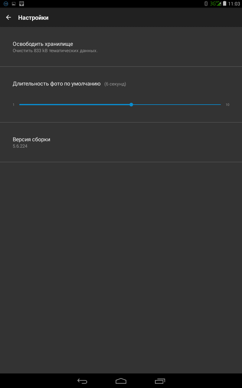 Что касается настроек, которые находятся в этом же меню, то их традиционно (уже) кото наплакал. Можно освободить облачное хранилище от тематических данных и установить длительность показа фото по умолчанию (от секунды до 10 секунд).