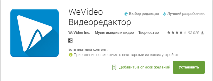 «WeVideo – это мощный, но простой в обращении видеоредактор на базе облачных технологий. Запечатлейте любимые моменты на фото и в видеоклипах и редактируйте их на ходу. С редактором WeVideo могут легко обращаться дети, но получать удовольствие от него может вся семья. Воспользуйтесь интуитивным интерфейсом и анимированными диалогами, в которых вы сможете увидеть свои изображения и видеоклипы на визуальной раскадровке. Запустите видео на мобильном устройстве и начните с того места, на котором остановились в полнофункциональном редакторе для настольного компьютера. Расскажите свою видео-историю, имея полный творческий контроль. Запечатлевайте, стилизуйте, создавайте и публикуйте привлекательные видео и мини-фильмы».