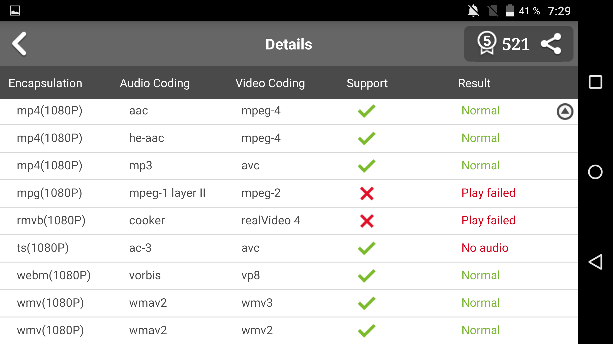 С помощью AnTuTu Video Tester мы проверили «всеядность» нашего героя.
