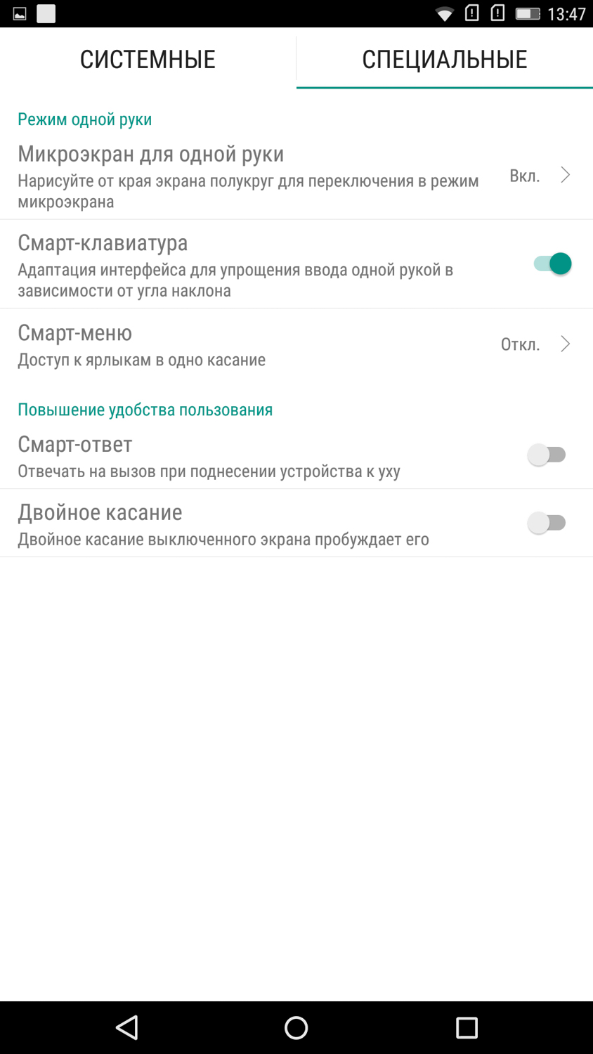 Из интересных мелочей можно выделить разве что режим для работы одной рукой, хотя даже в этом случае диагональ получается не маленькой.