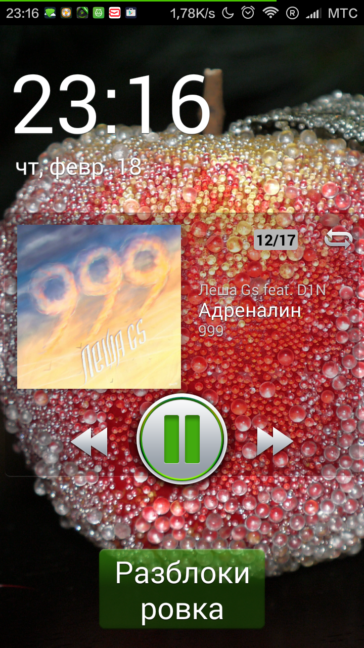 Еще в приложении есть экран блокировки, но (в отличие от плеера Stellio) он здесь просто есть. Вы только посмотрите на его оформление и качество – это уровень OC Android 2.1, а то и более ранних версий. К тому же, все происходящее не очень хорошо работает: встречаются подтормаживания, откровенные лаги и двойной «лок-скрин».