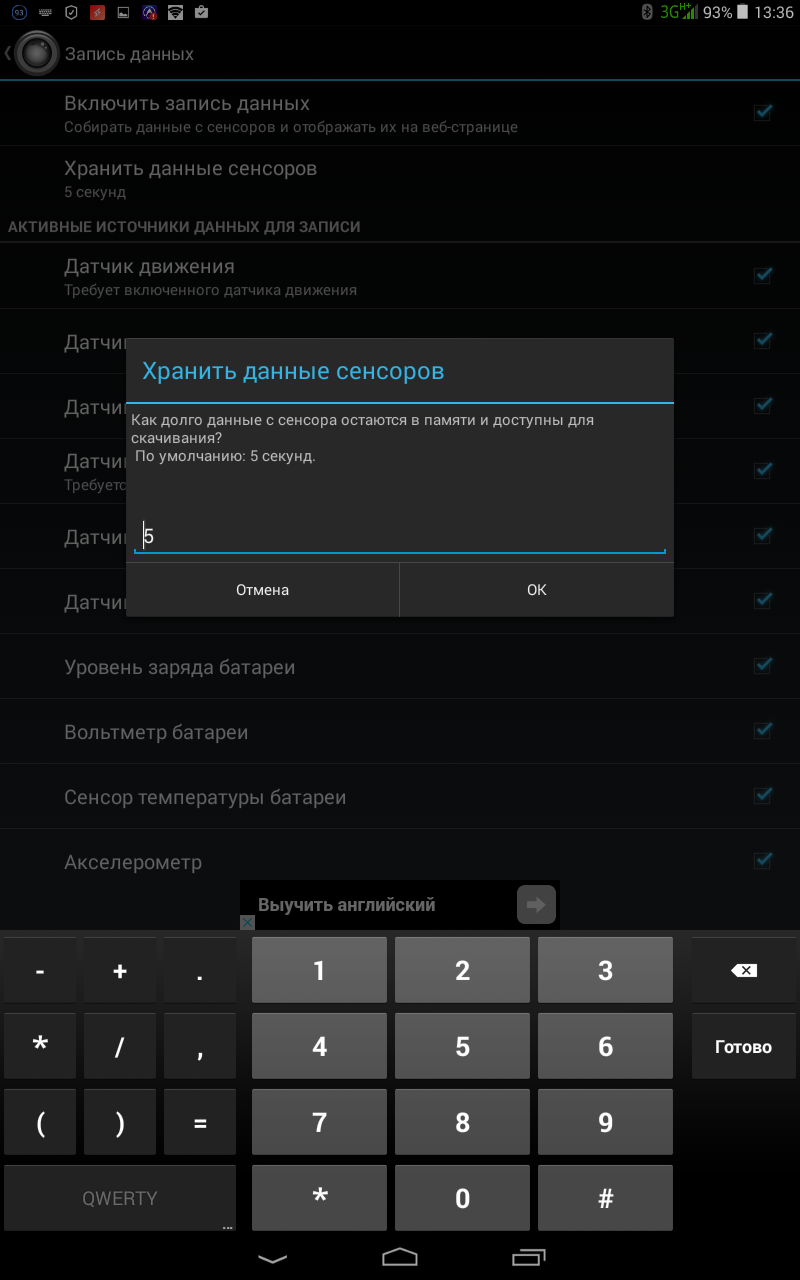 Здесь активируем то, что будет доступно при удаленном доступе к камере через веб-интерфейс. Так, можно деактивировать датчик движения и включить датчик звука. По сути, мы даем право на управление смартфоном через сеть или интернет. При этом данные сенсоров могут обновляться хоть через секунду, хоть через час.