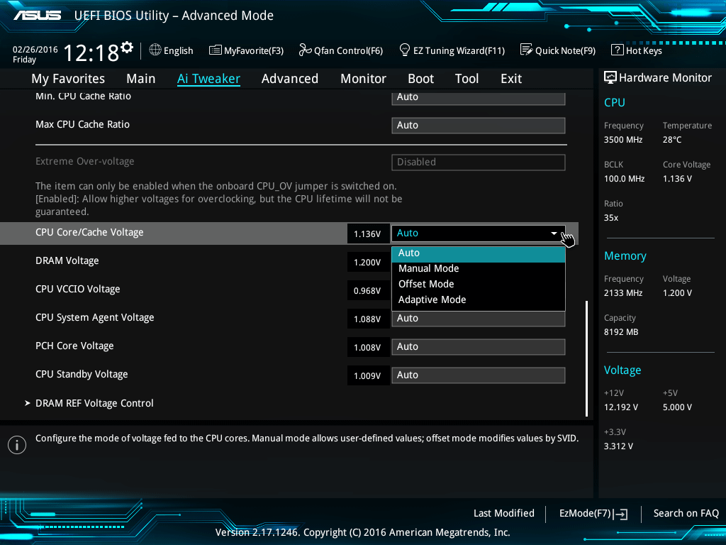 Если разгон осуществляется с напряжением в режиме Manual, то следует поставить опцию Load-Line Calibration на Level 6. Только на этом уровне напряжение Vcore под нагрузкой держится стабильно, максимально приближаясь к выставленному в BIOS значению и не проседая.