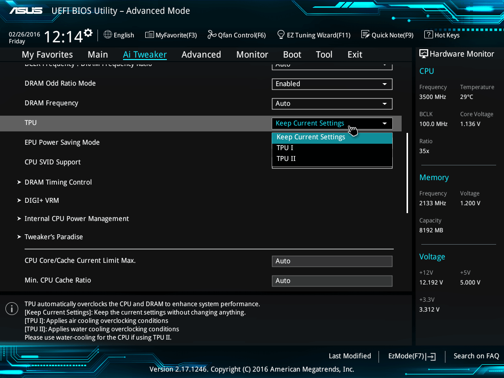 Тоже самое можно сделать из BIOS, в закладке Ai Tweaker для этого есть соответствующий раздел. Для первого режима производитель рекомендует использовать воздушное охлаждение, для второго режима – жидкостное. Но оверклокеру эта фишка вряд ли будет интересна, она больше подойдет для новичка.