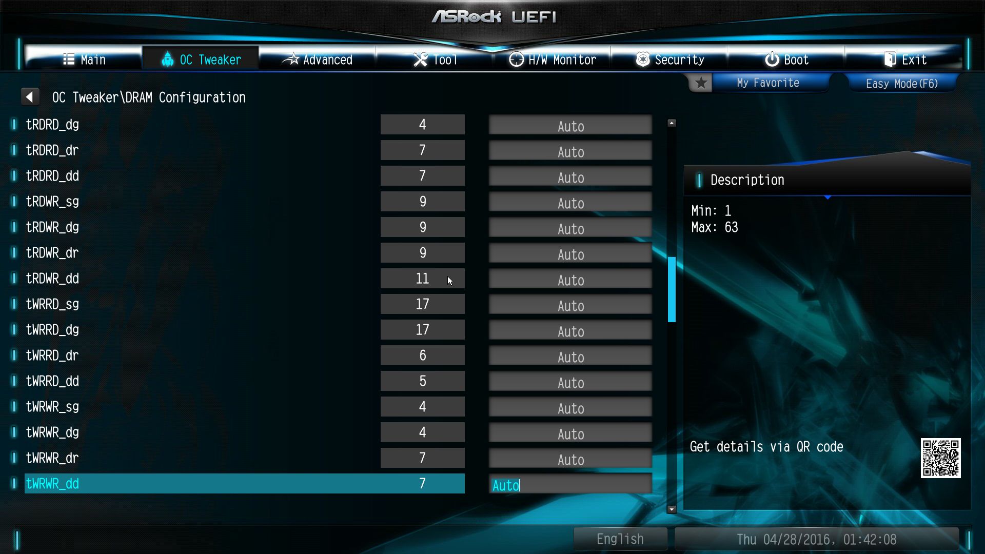 | Напряжение оперативной памяти | От 0.950 до 1.650 В с шагом 0.050 |