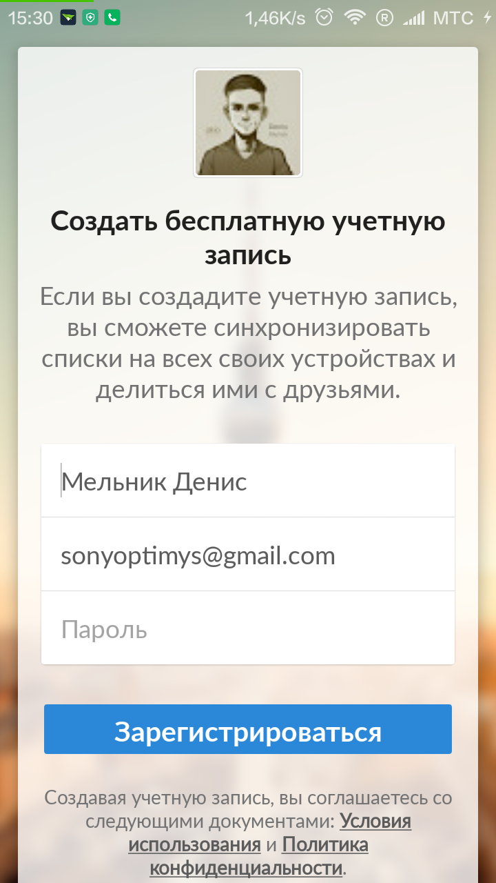 Первый запуск Wunderlist будет осложнен регистрацией. Впрочем, ничего сверхсложного – процесс максимально простой.