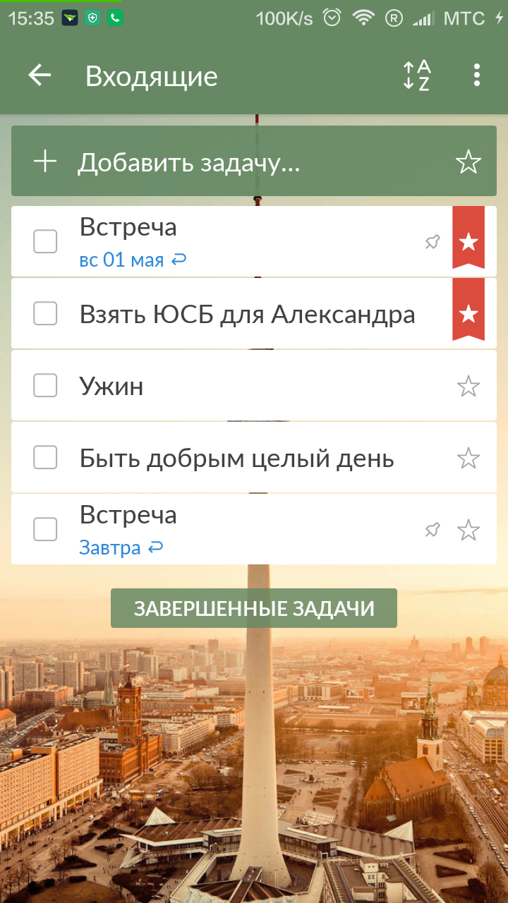 Приложение создано немецкими разработчиками, поэтому здесь все строго, четко и по назначению. Прямо по центру экрана Wunderlist у нас строка добавления задач – вписали название и задача добавлена.