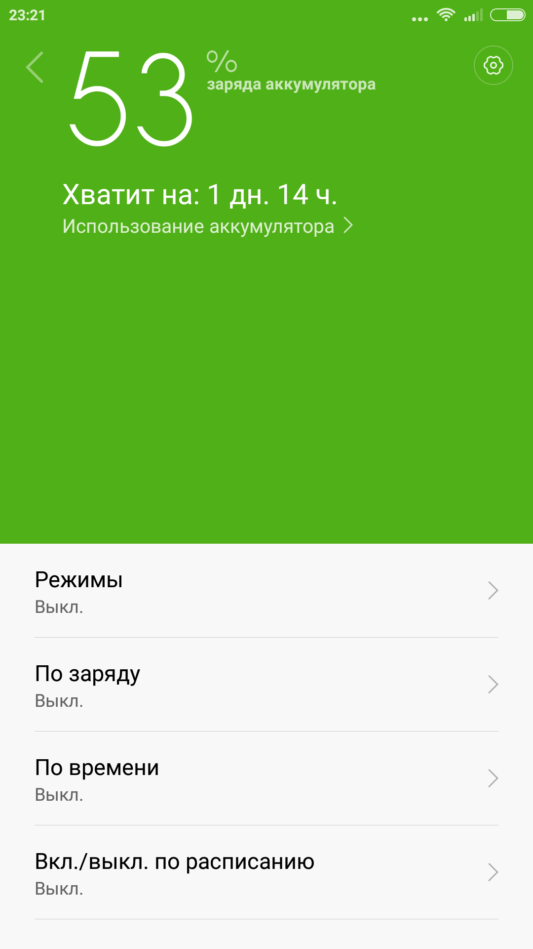 | Режим использования | Время работы |