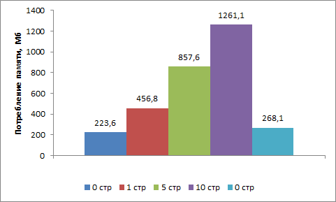 Как можно видеть, программа потребляет значительное количество оперативной памяти. При закрытии вкладок практически вся использованная память освобождается.