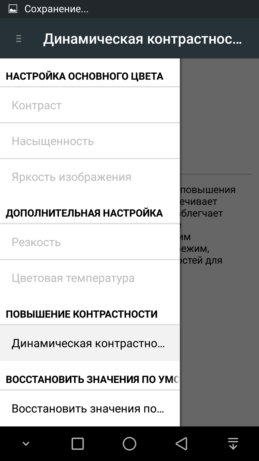 Дополнительно, в независимости от выбранного режима, можно включить динамическую контрастность.