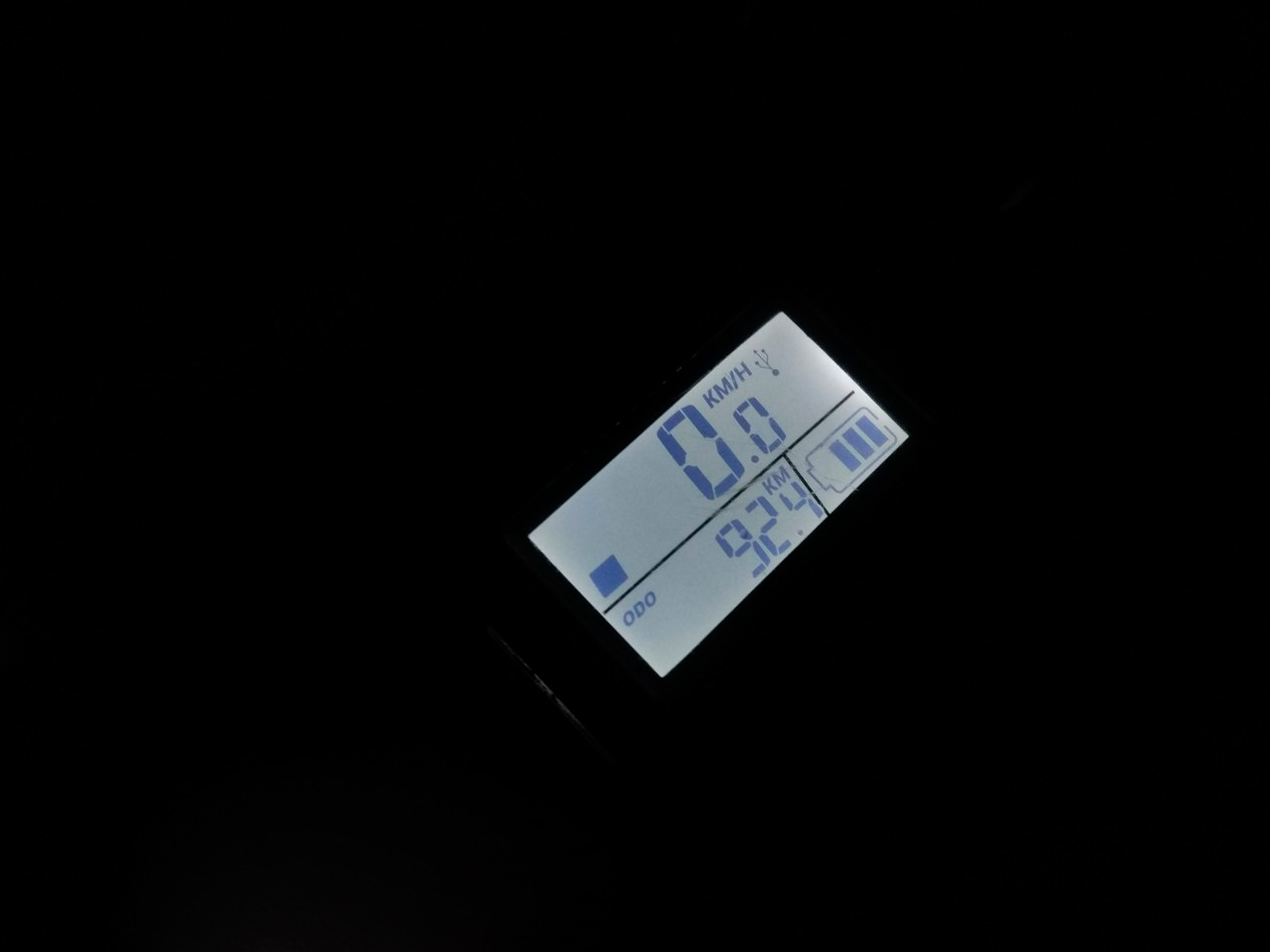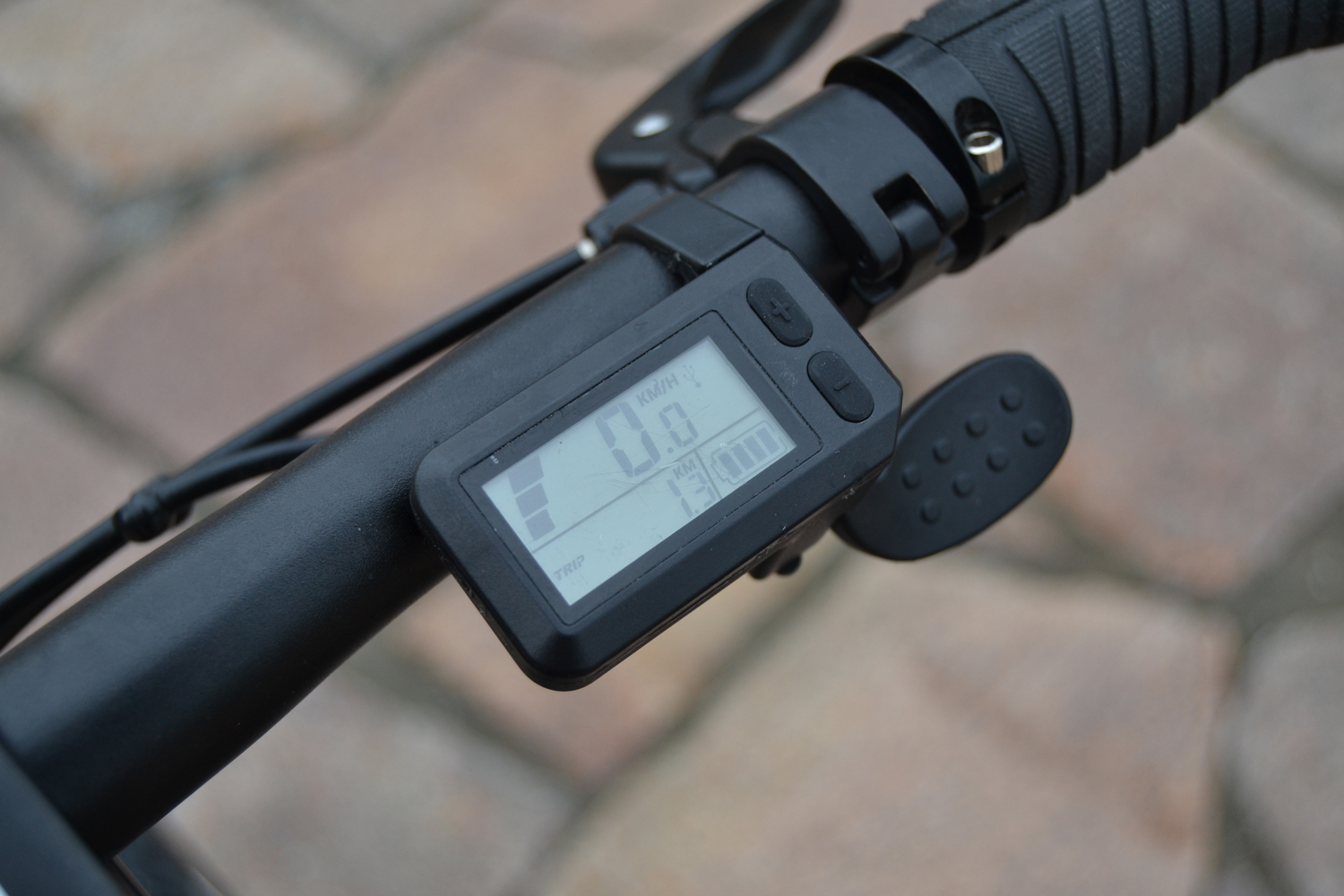 На руле размещен небольшой велокомпьютер. Здесь можно контролировать скорость, общий пробег велосипеда (одометр) и пробег в данной поездке (обнуляется автоматически после отключения велосипеда). Здесь же присутствует пиктограмма заряда батареи.