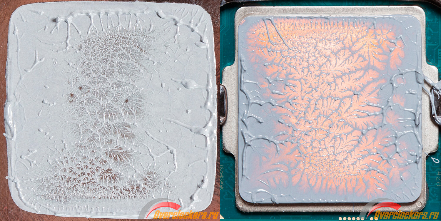 И эта двухъядерная модель оказалась обладательницей вогнутой крышки. Черт меня дернул снять «моноблок» и посмотреть, как можно видеть, отпечаток впечатляет.