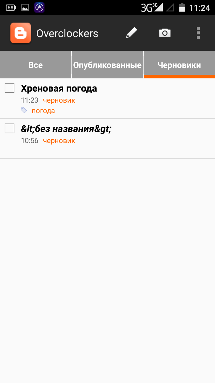 Интерфейс программы простой, но эффективный – все в лучших традициях Google. При этом используется именно «светлая» сторона силы. Всего три вкладки – «Все», «Опубликованные» и «Черновики». Думаю, объяснять их значение не надо.