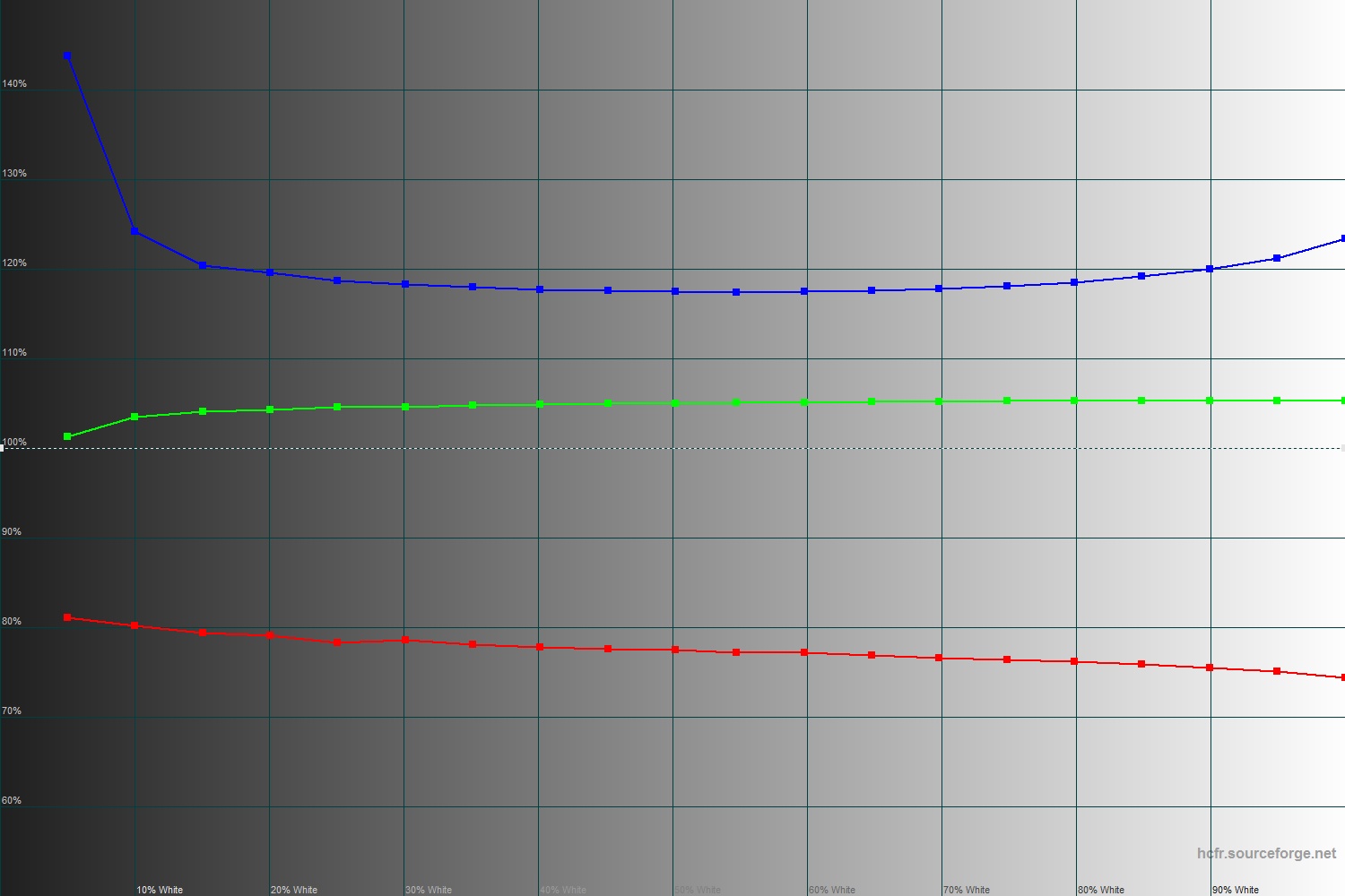 Заметен холодноватый оттенок белого поля, но это мы еще обсудим ниже, когда увидим график цветовой температуры.