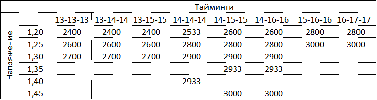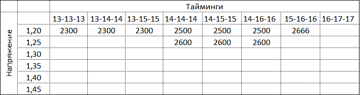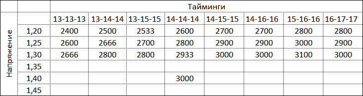 Это заметно ограничивает широту экспериментов с разгоном, ведь для некоторых типов микросхем оптимальными являются формулы неравных таймингов вроде «х + (х+1) + (х+2)».