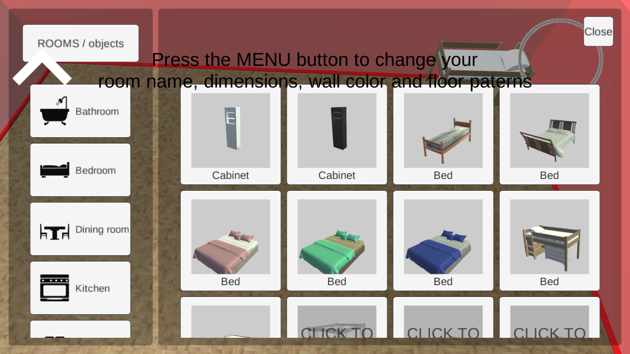 Каждая комната сохраняется отдельно. После чего можно перейти к другой комнате и оформить ее на свой вкус.