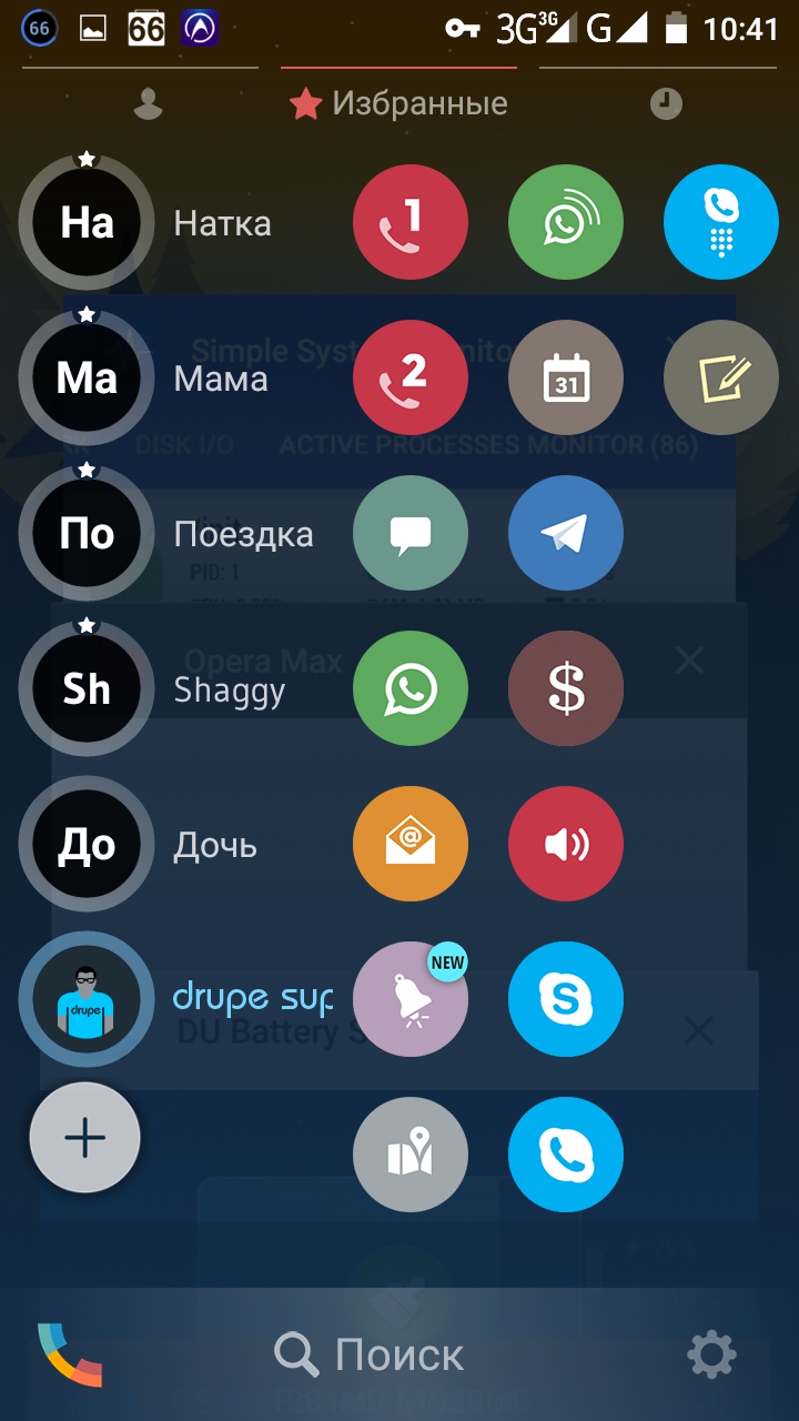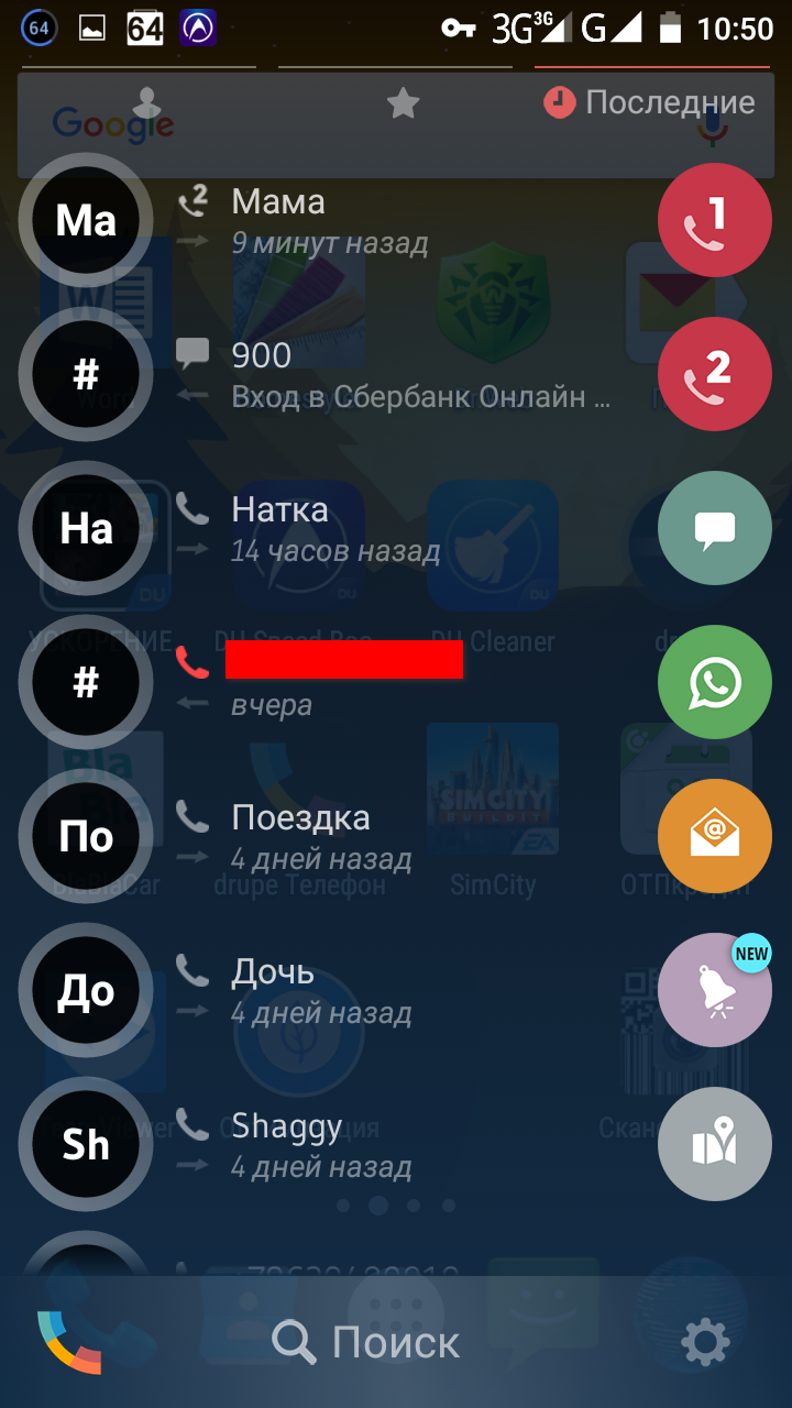 Еще одно однорукое решение, призванное облегчить работу с номеронабирателем и телефонной книгой. Таким образом, все контакты и мессенджеры собраны в одном месте, доступном на всех экранах рабочего стола. К слову, нечто подобное реализовано и в топовых «лаунчерах», которые мой коллега обозревал не так давно.