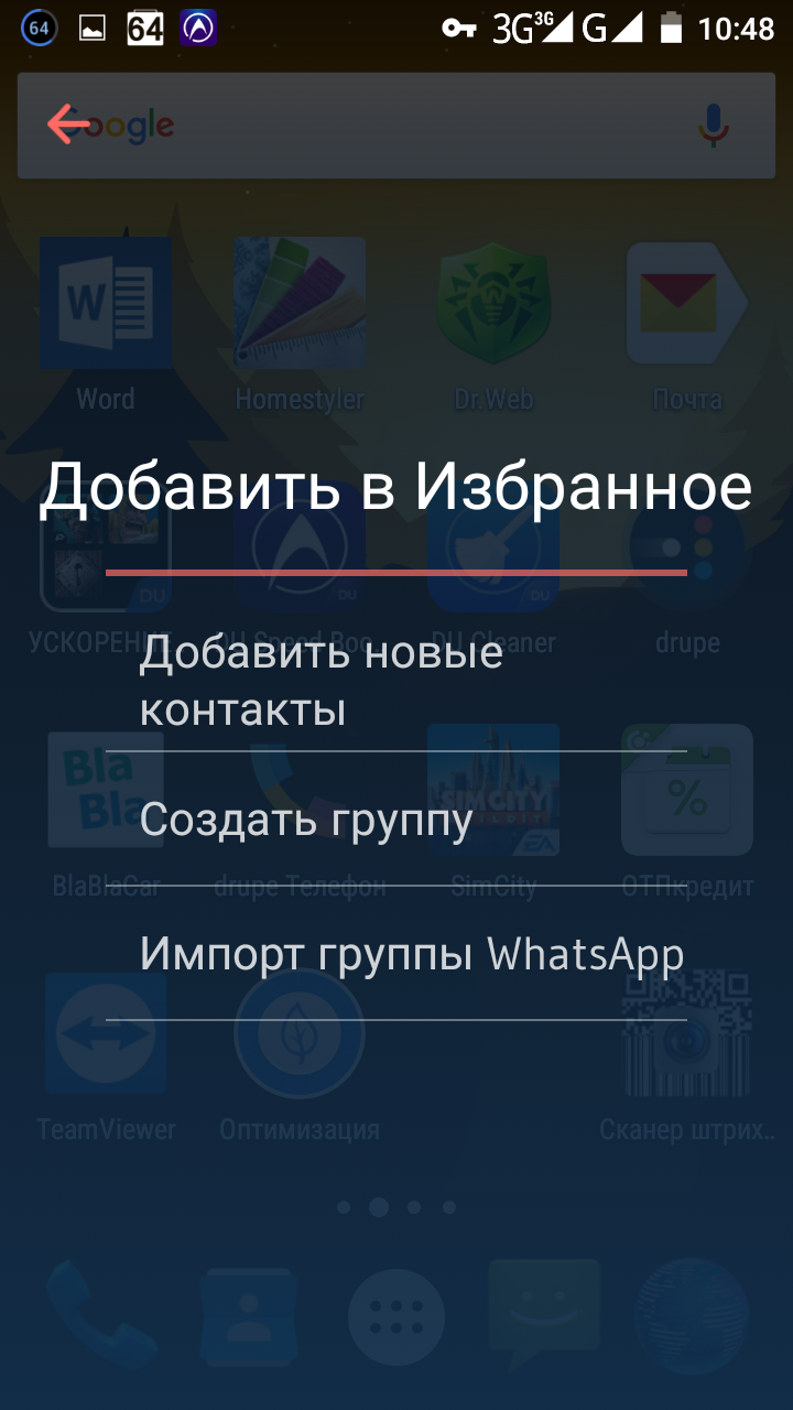В «Избранное» можно создать группу или импортировать оную из Whats App, что очень удобно, если вы используется этот мессенджер для звонков.