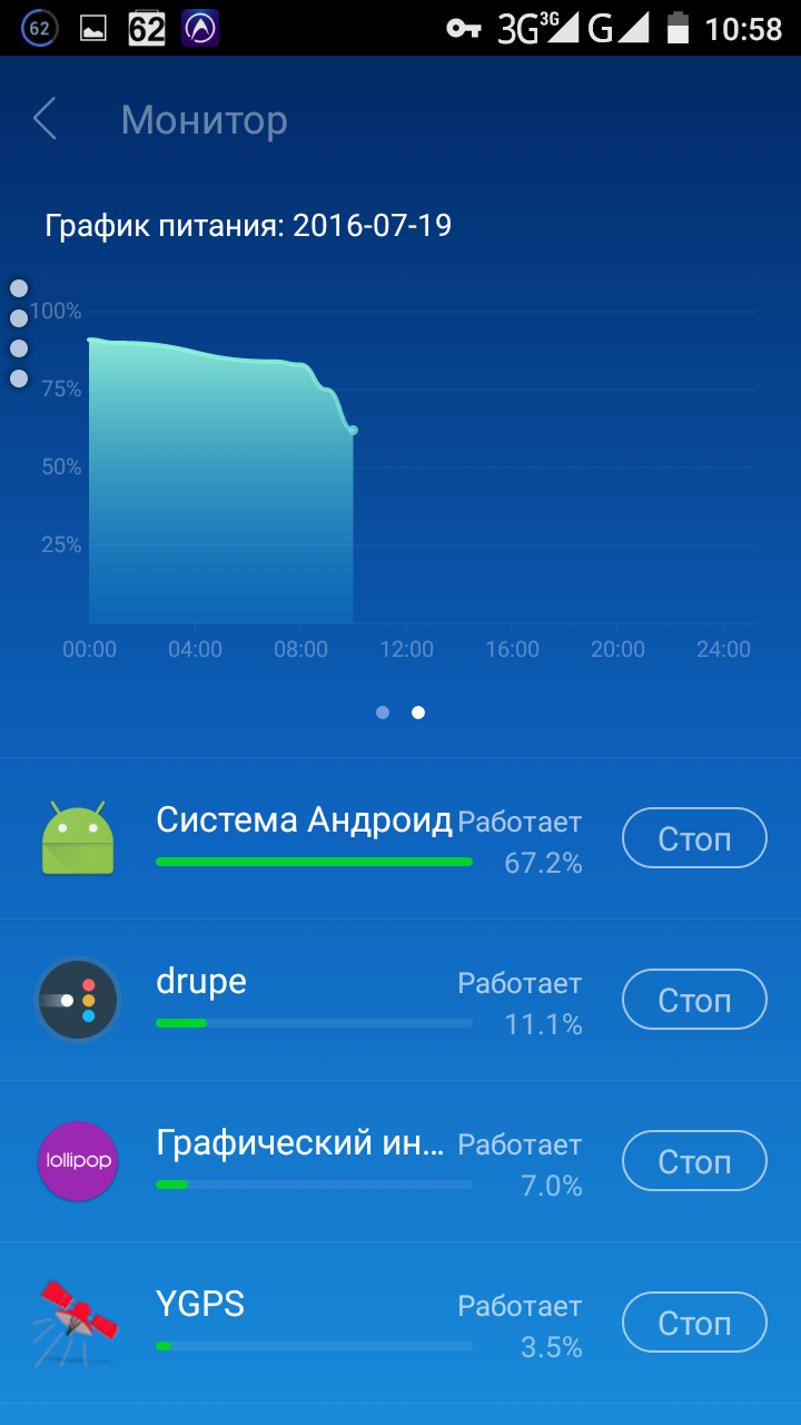 Что касается нагрузки на систему, то drupe потребляет 150 Мбайт ОЗУ при 0,65% на процессоре. Это и неудивительно, если учесть анимацию, а также интерактивность. При этом расход аккумулятора составил 1,7% за час, нагрузка на оный – без малого 11,1%, то есть при достаточно интенсивном использовании программы емкость батареи может проседать в разы.