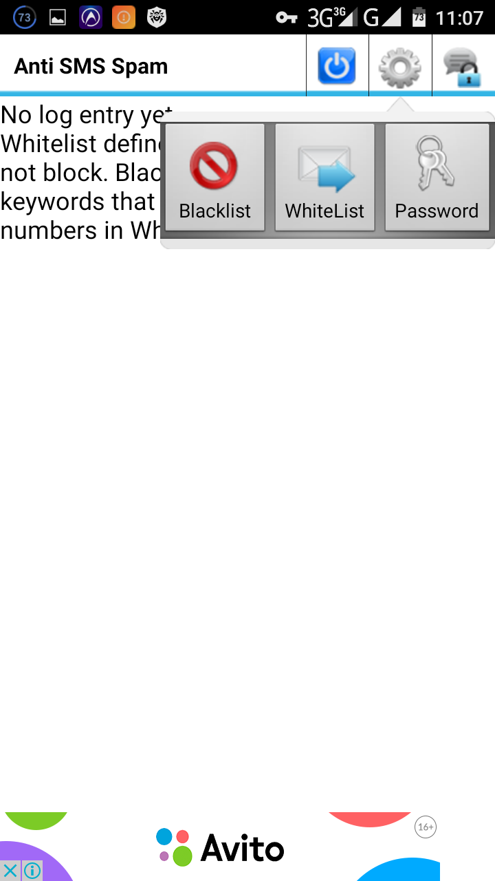 Надо отметить, что кнопка настроек анимирована. Здесь доступно настроить черный и белый список и опять-таки назначить пароль. К слову, дублированием опций страдает не один разработчик на Google Play.