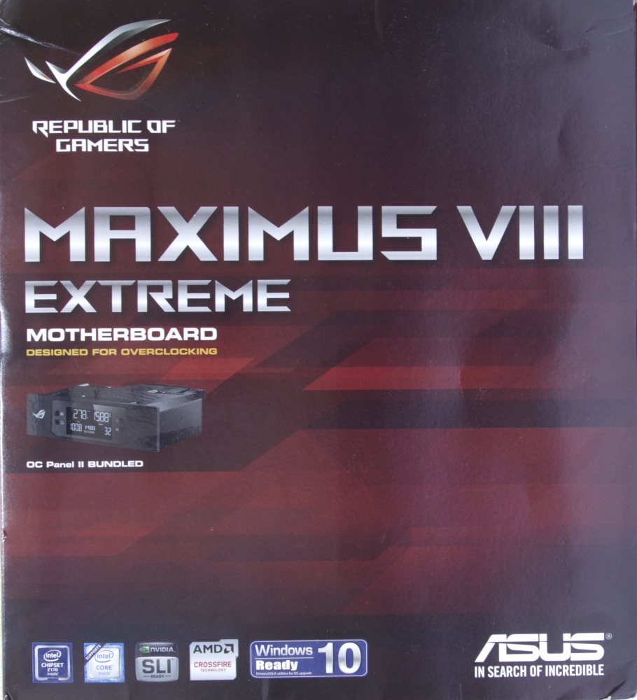 С данной символикой выпускаются не только материнские платы и видеокарты, но и множество другой компьютерной периферии, ноутбуки и сетевое оборудование. Эта продукция находит популярность и в среде энтузиастов, поскольку для них выпускаются специальные модели, ориентированные на разгон. К ним можно причислить и материнскую плату ASUS Maximus VIII Extreme. Нельзя сказать, что это новинка, поскольку она появилась практически сразу после анонса процессоров Intel Skylake. Но поскольку мы уже изучили практически все платы серии ASUS Maximus VIII, нельзя не сказать хоть несколько слов о версии Extreme. Рассмотрим же ее более детально.