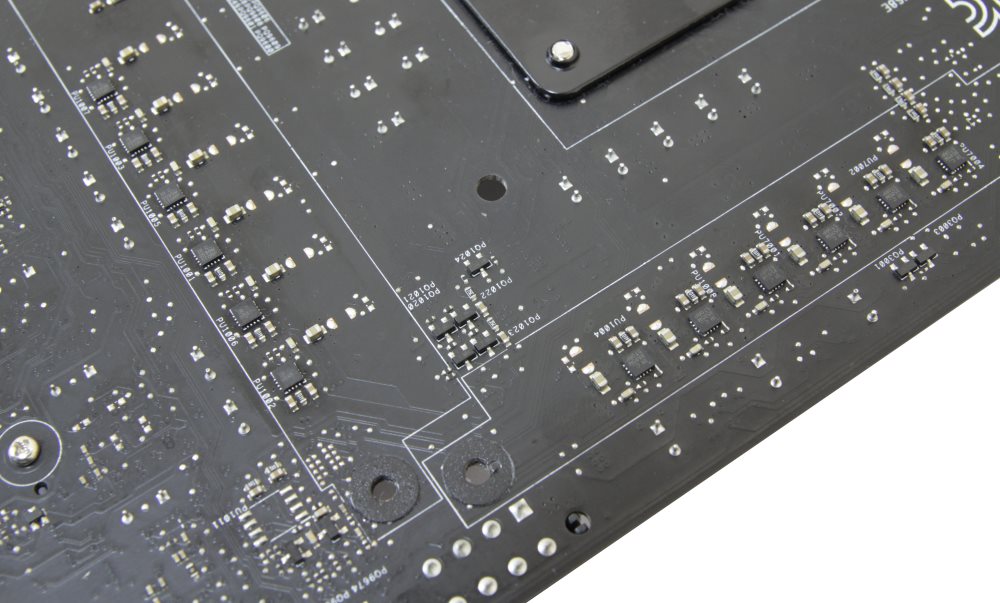 Вся подсистема питания называется Extreme Engine Digi+. В ее состав входят не только транзисторные сборки типа OptiMOS, но и японские металлические конденсаторы, а также катушки индуктивности типа MicroFine.