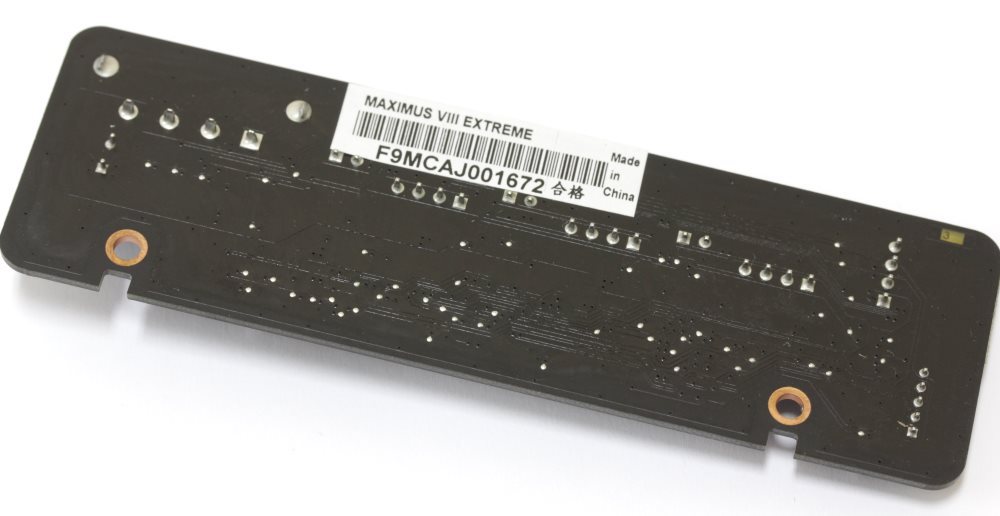 Устройство ASUS OC Panel тоже поставляется в комплекте к данной плате. Мы уже могли видеть его на материнской плате ASUS Rampage V Extreme. Там поставлялось устройство первой ревизии, а вторая появилась только на ASUS Maximus VIII Extreme. Оба без проблем работают с данной платой.