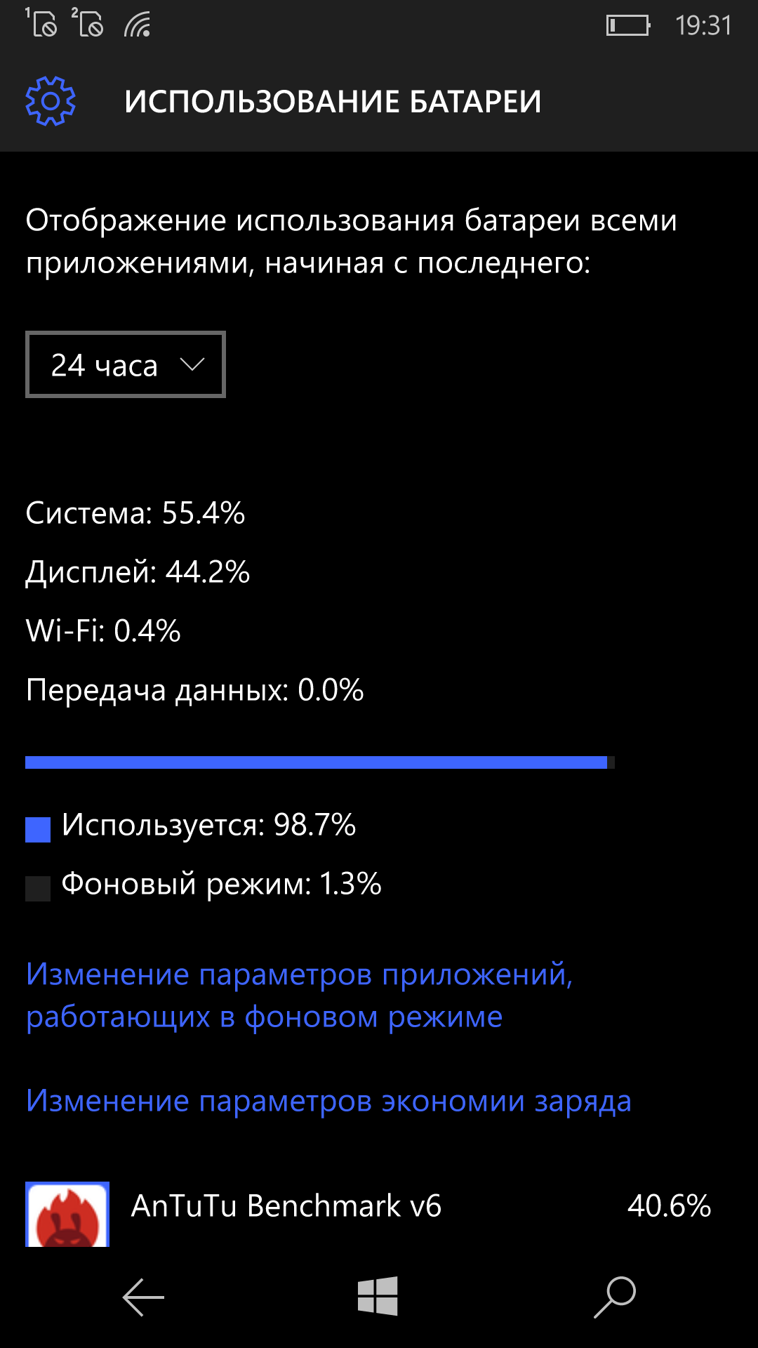 Смартфоны, работающие под управлением ОС Windows Phone, всегда выделялись неплохими показателями автономности при прочих равных характеристиках. И причиной тому являлась хорошая оптимизация софта и возможность использования более скромных SoC. Но герой обзора наделен производительной платформой, да и операционную систему обновили. Сказались ли изменения на автономности?