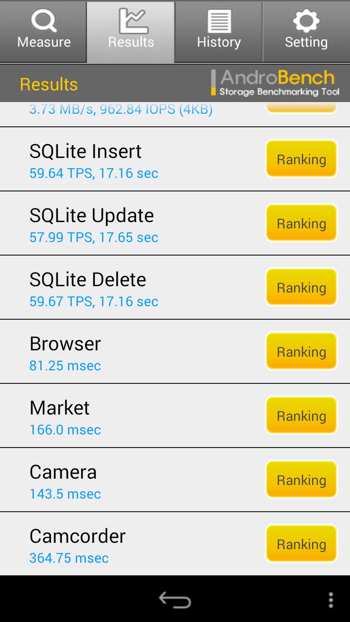 С помощью уже привычного нам приложения AndroBench мы протестировали скорость работы файловой системы.