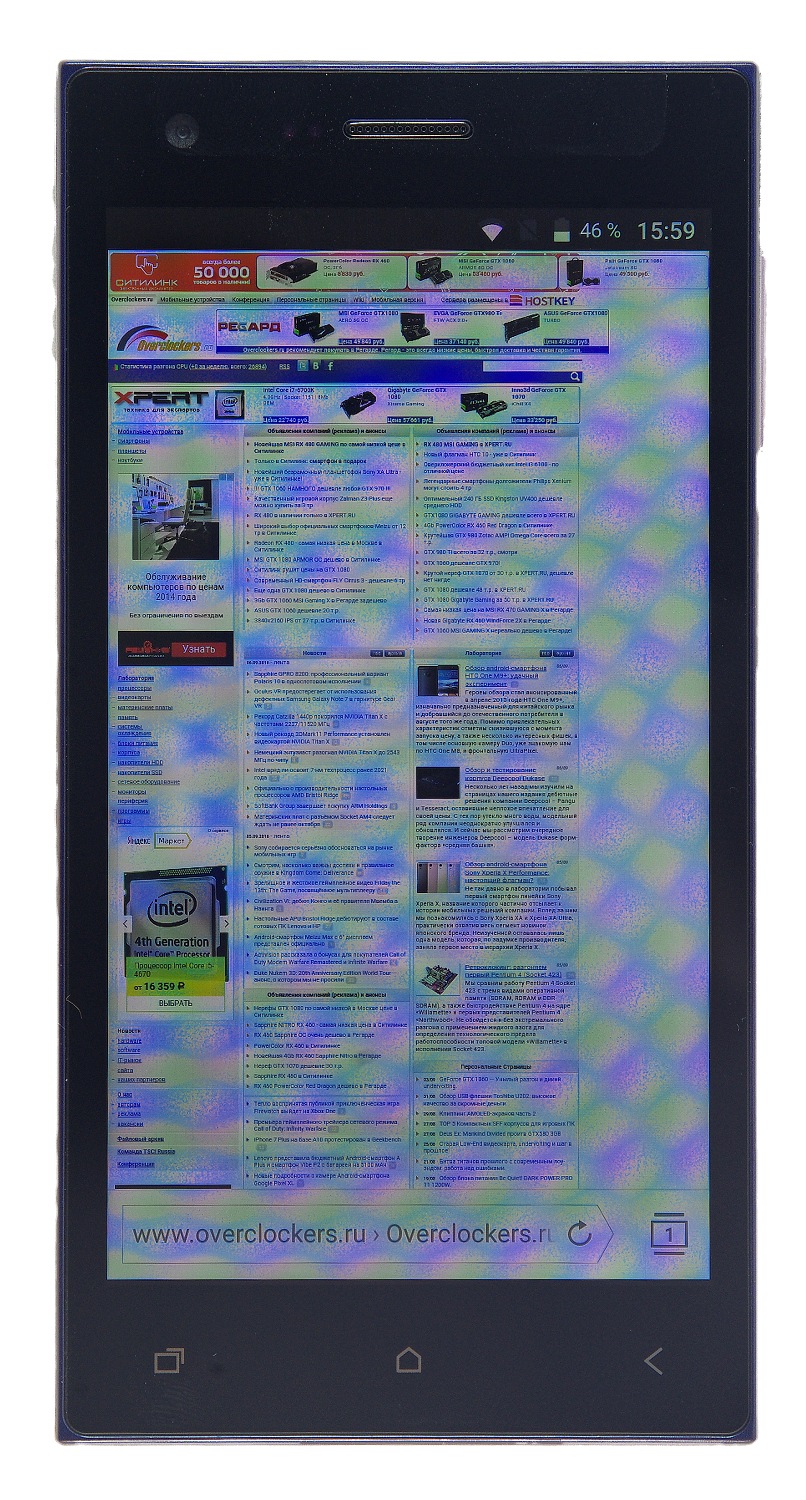 Судя по контрастности и цветопередаче дисплея, в смартфоне используется технология OGS, хотя производитель этого не указывает.