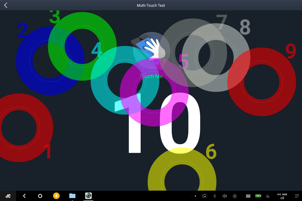 Теперь проверяем, на что способен тачскрин. Тачскрин распознает одновременно до 10 касаний, как это обычно и делается для крупных дисплеев: