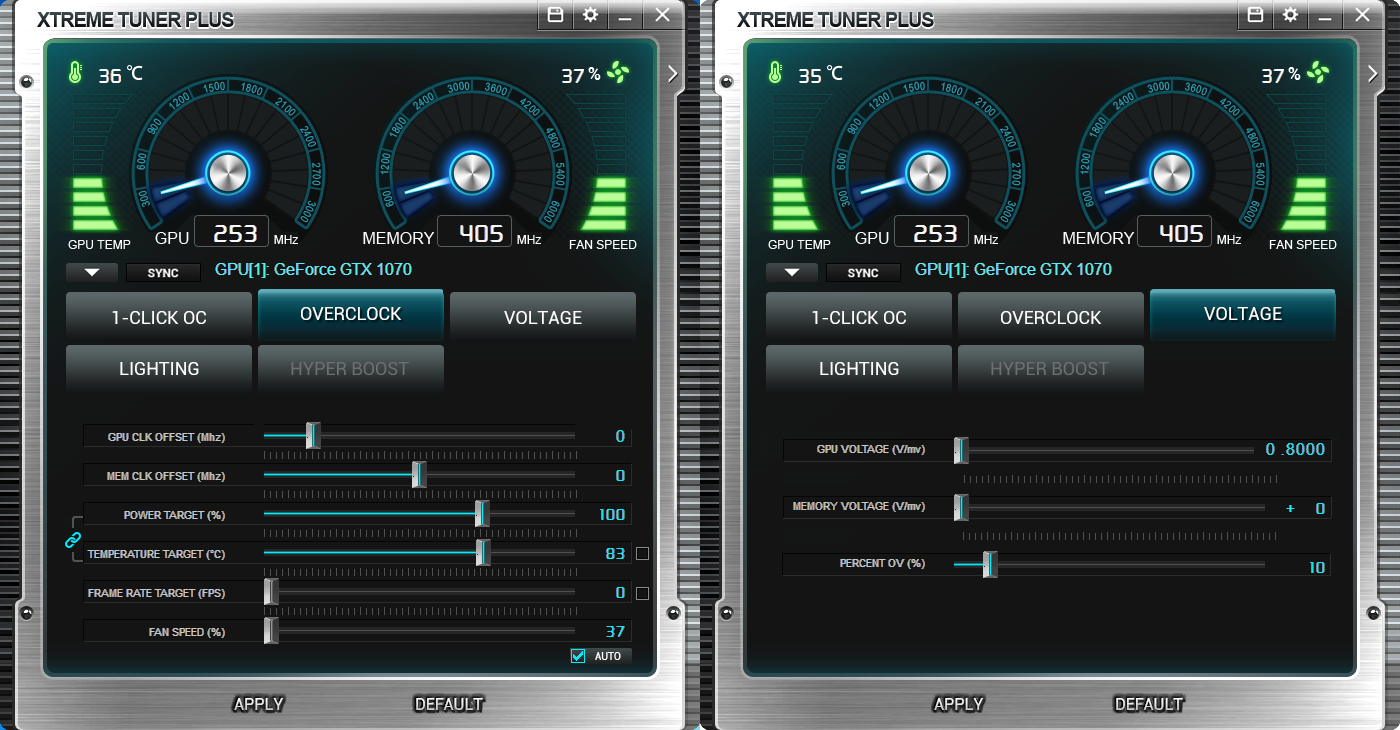 Дальнейшие эксперименты проводились с фирменной утилитой XtremeTuner Plus, дизайн которой изменился (субъективно – на любителя), и его мы затрагивать не будем.