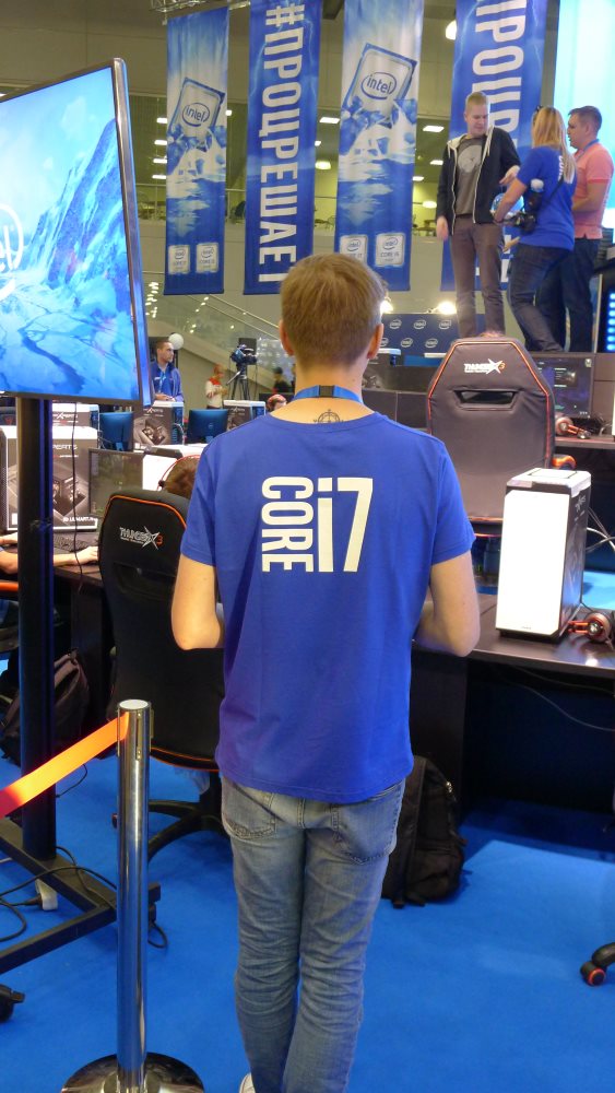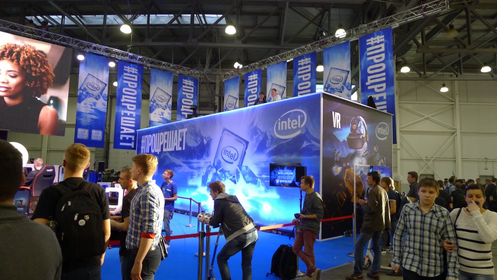 Еще одну большую территорию оккупировал процессорный гигант. Не то чтобы тут был представлен какой-то огромный ассортимент продукции. Все что хотел донести производитель поместилось в одном хэштеге #ПРОЦРЕШАЕТ. Я сослепу сначала не прочитал первую букву Р и немного присел в недоумении, но потом въехал.