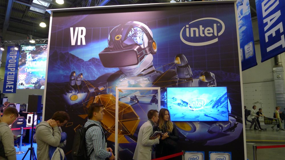 В данном случае были представлены компьютеры MicroXperts от компании Ulmart. Судя по корпусам это были топовые комплектации готовых системных блоков. Как и остальные крупные участники данной выставки фирма Intel с головой окунулась в бездну VR. Было несколько стендов, где все желающие могли оценить прелесть данной технологии.