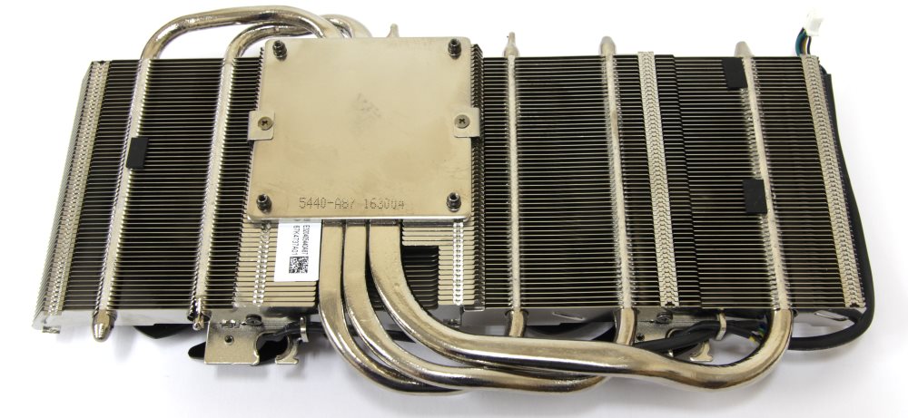 Тепловых трубок здесь тоже всего три: две по 6 мм и одна 10 мм. В целом конструкция похожа, но мелкие отличия есть. Исходя из этого, можно предположить то, что производитель считает приблизительно одинаковым тепловыделение графических процессоров GTX1060 и RX480, хотя мне кажется, что это не так.