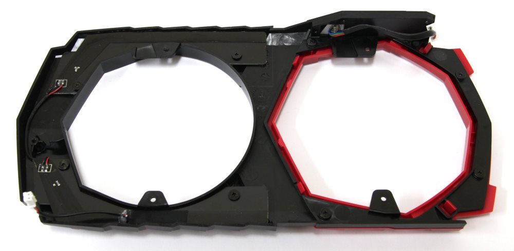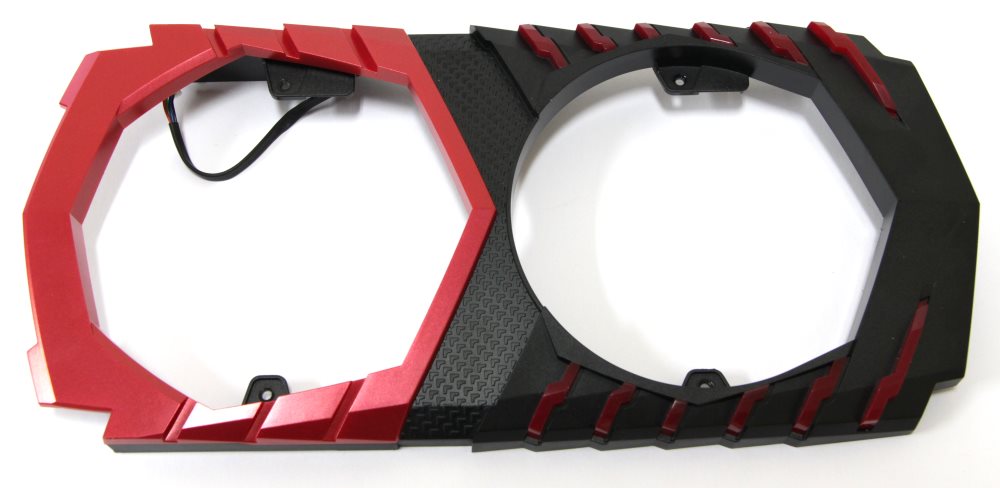 С обратной стороны мы видим, что изначально он черного цвета, а спереди прикреплена красная панель. Кроме этого, мы можем обнаружить красные полупрозрачные вставки на черной половине, где с обратной стороны приклеен модуль с несколькими светодиодами. Соответственно эти элементы светятся исключительно красным цветом, но зато можно настроить через программу Gaming APP различные эффекты мерцания.