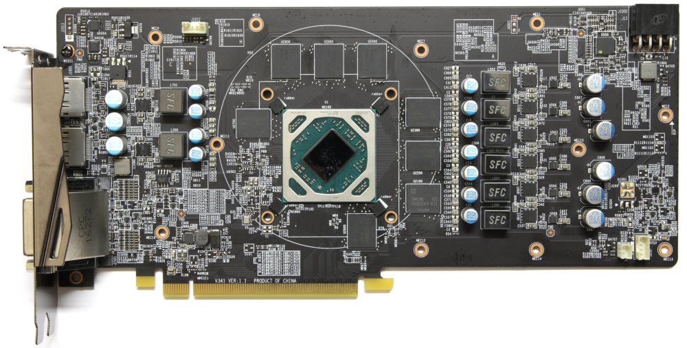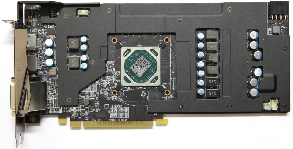 По центру распаян графический процессор Polaris 10 (Ellesmere). Он изготовлен на 30-й неделе 2016 года в Тайване.