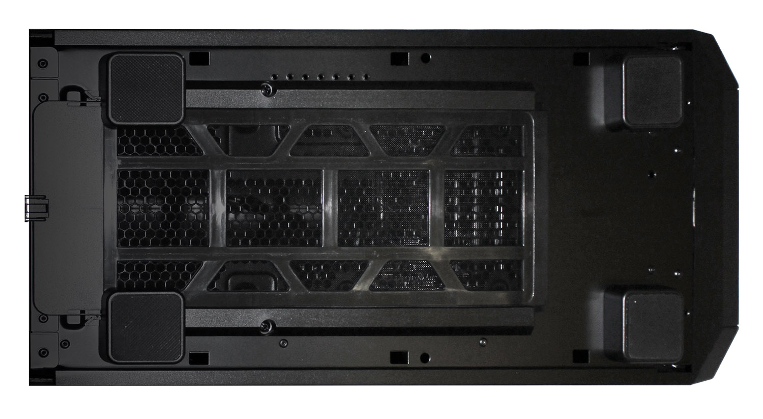 Четыре крупных отверстия в поддоне, снабженных силиконовыми мембранами, предназначены для организации кабелей. «Сable management» в данном корпусе be quiet! выглядит весьма многообещающе, но его удобство и эффективность мы сможем оценить только во время сборки.