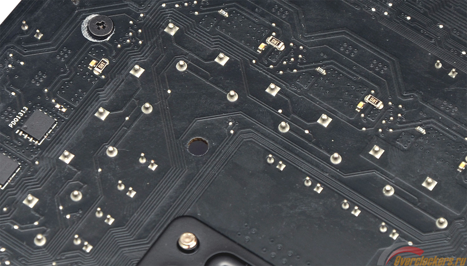 По фотографии обратной стороны печатной платы можно отметить, что для всех трех радиаторов системы охлаждения используется винтовое крепление. Причем это простые винты, без пружин. Здесь же видны винты крепления декоративной рамки, накрывающей интерфейсную панель.
