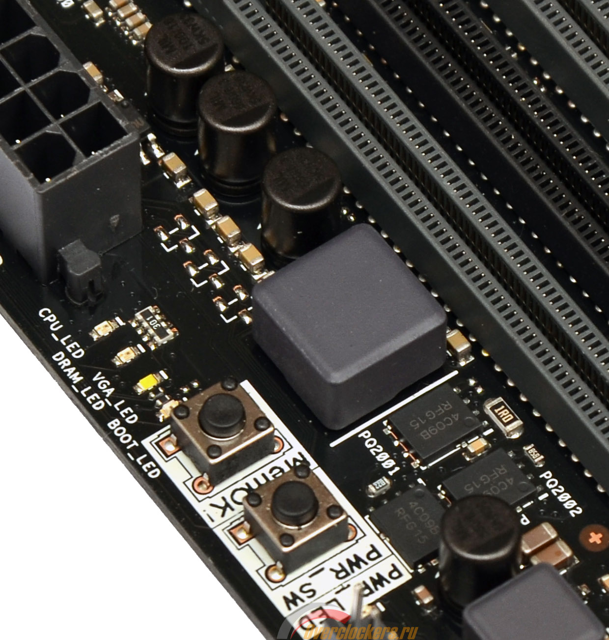 Недалеко от разъемов оперативной памяти нашлось место для пары кнопок: