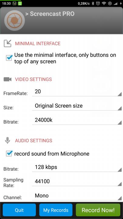 Некогда ранее программа Screencast Video Recorder была лучшей для захвата видео с экранов мобильных устройств, но проходят года, меняются технологии и все это время нужно поддерживать разработку в надлежащем виде. Именно с этим у нее проблемы.