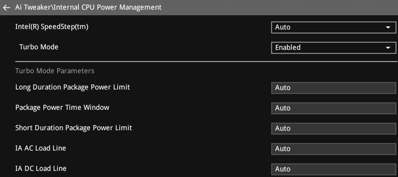 Internal CPU Power Management – управление функциями энергосбережения процессора и лимитами энергопотребления.