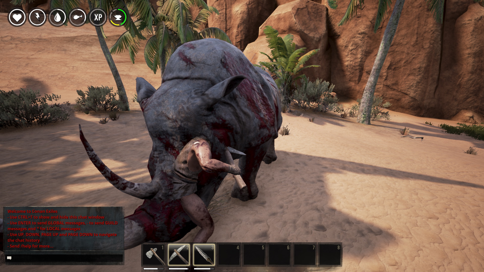 PvE-серверы не столь опасны, как PvP, но и тут не расслабишься. Врагов немало, они выскакивают откуда ни возьмись и изрядно треплют нервы, если вы не экипированы по высшему разряду. Агрессивные страусы, змеи, шакалы, демоны, скелеты, пауки, летучие мыши, вооруженные NPC – желающих разделать тушку наглого странника полно.