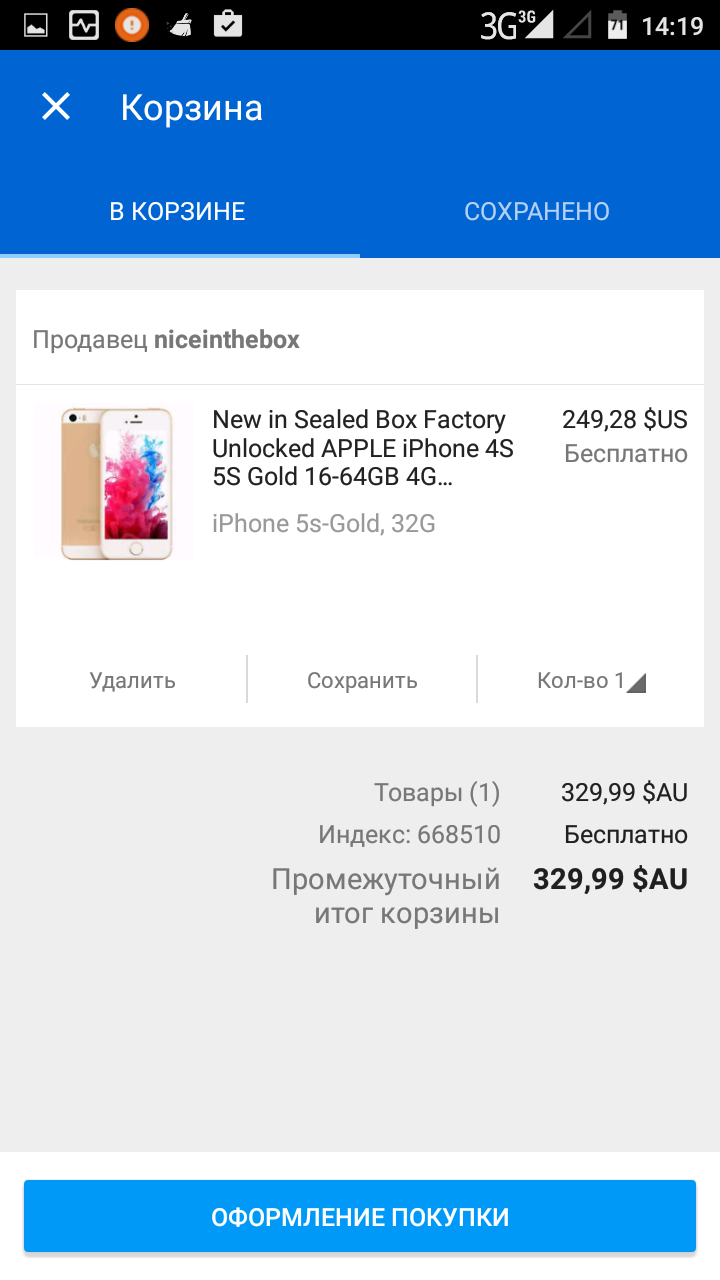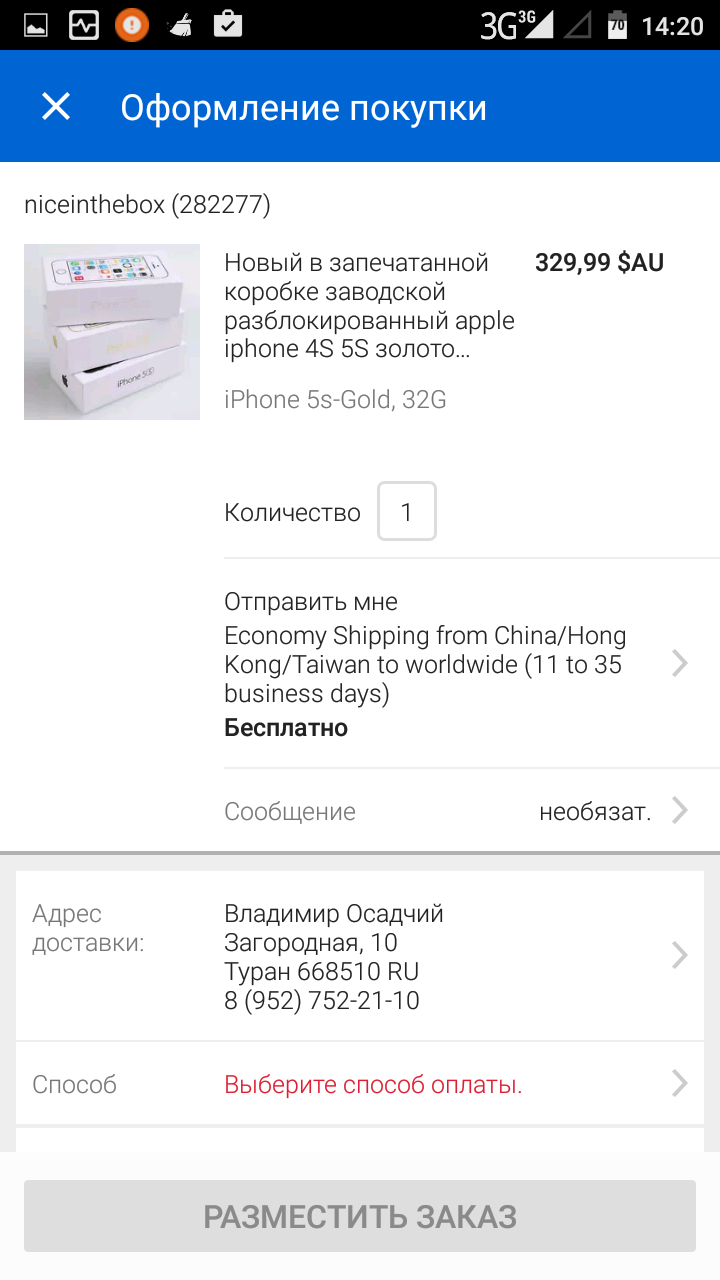 Зато приложение предложило стразу три варианта платной доставки посредством Почты России. Помимо оплаты банковской картой предусмотрен и наложенный платеж, что, кстати, распространяется не на все виды товаров.