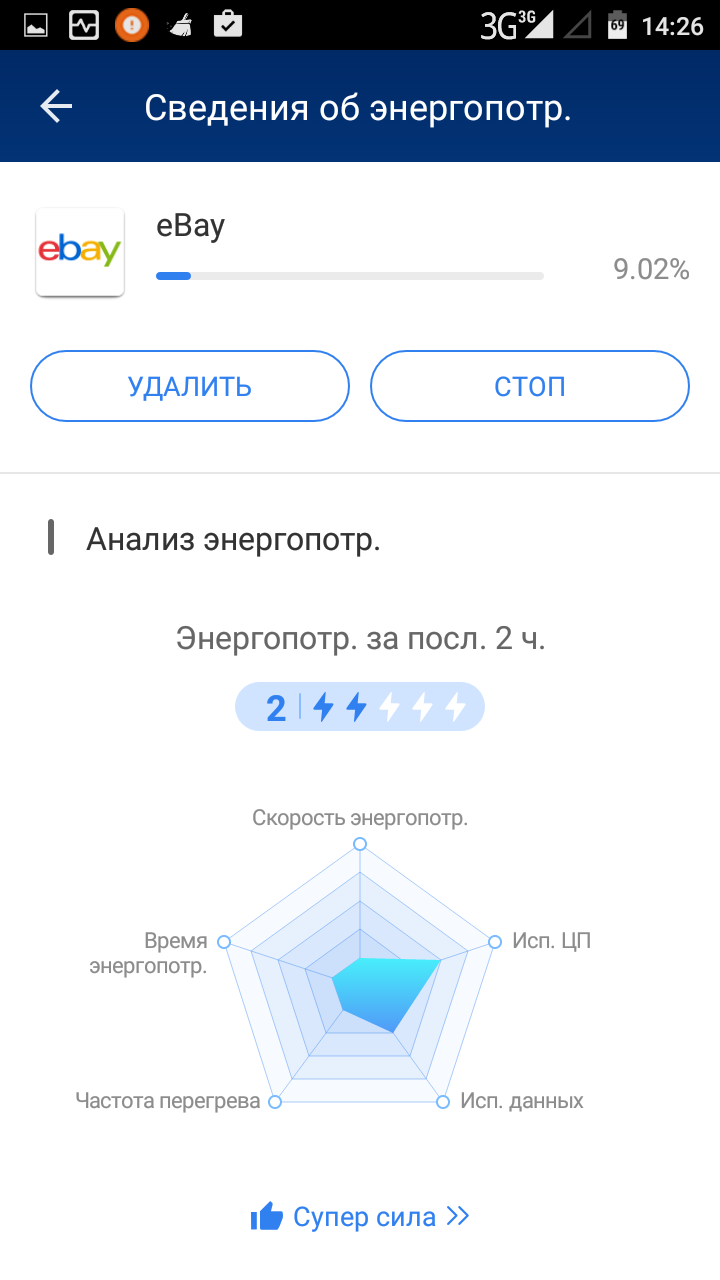 В среднем приложение расходует не более 190 Мбайт ОЗУ при 0.2% на процессоре. Расход заряда батареи находится на уровне 9%, скорость энергопотребления равна 32 мВт. Таким образом мобильный клиент не особо вредит системе и позволяет покупать желаемое и не только, как угодно и где угодно.