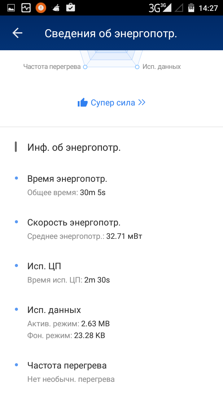 Теперь самое интересное. Оперативная память расходуется в количестве 160 Мбайт при 0.3% на процессоре. Аккумулятор проседает на 16.5% за день со скоростью энергопотребления в 31.4 мВт. Неплохие показатели для клиента интернет-магазина.