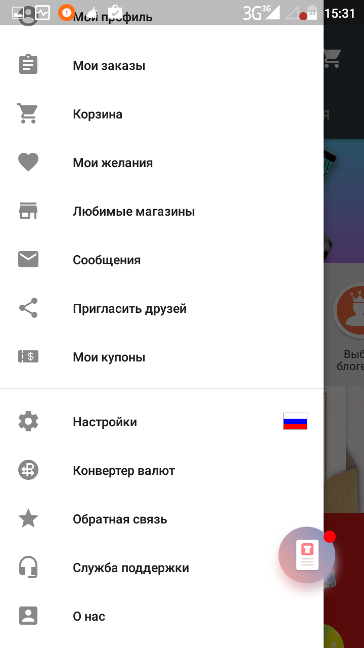 Ниже находится избранное, сообщения от продавцов, конвертер валют, служба поддержки, которая неплохо работает, и настройки.
