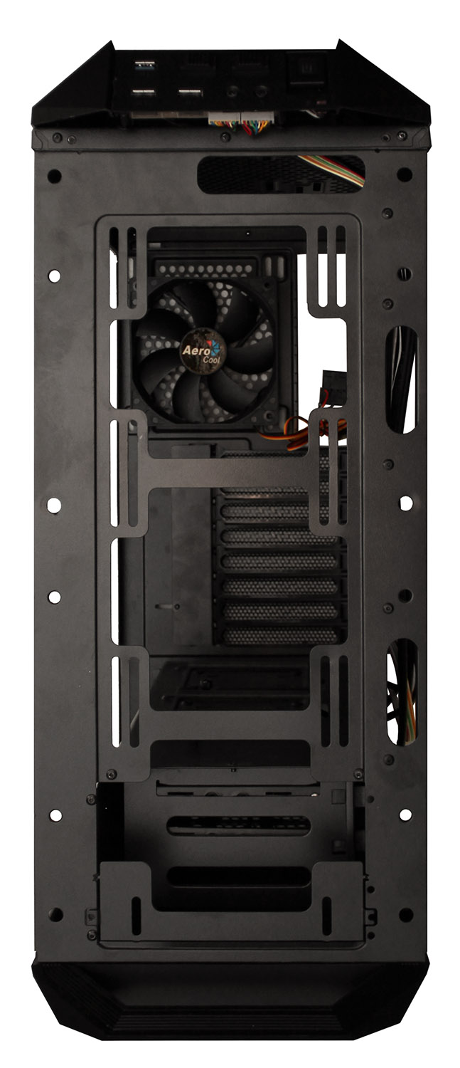Система организации кабелей практически идентична таковой в Aerocool P7-C1 и состоит из большого вертикального отверстия, пары отверстий под верхней гранью и пары отверстий в нижней части. В прошлый раз она показала себя исключительно удобной, но не упростили ли ее в данном случае? Это выяснится при сборке системы.