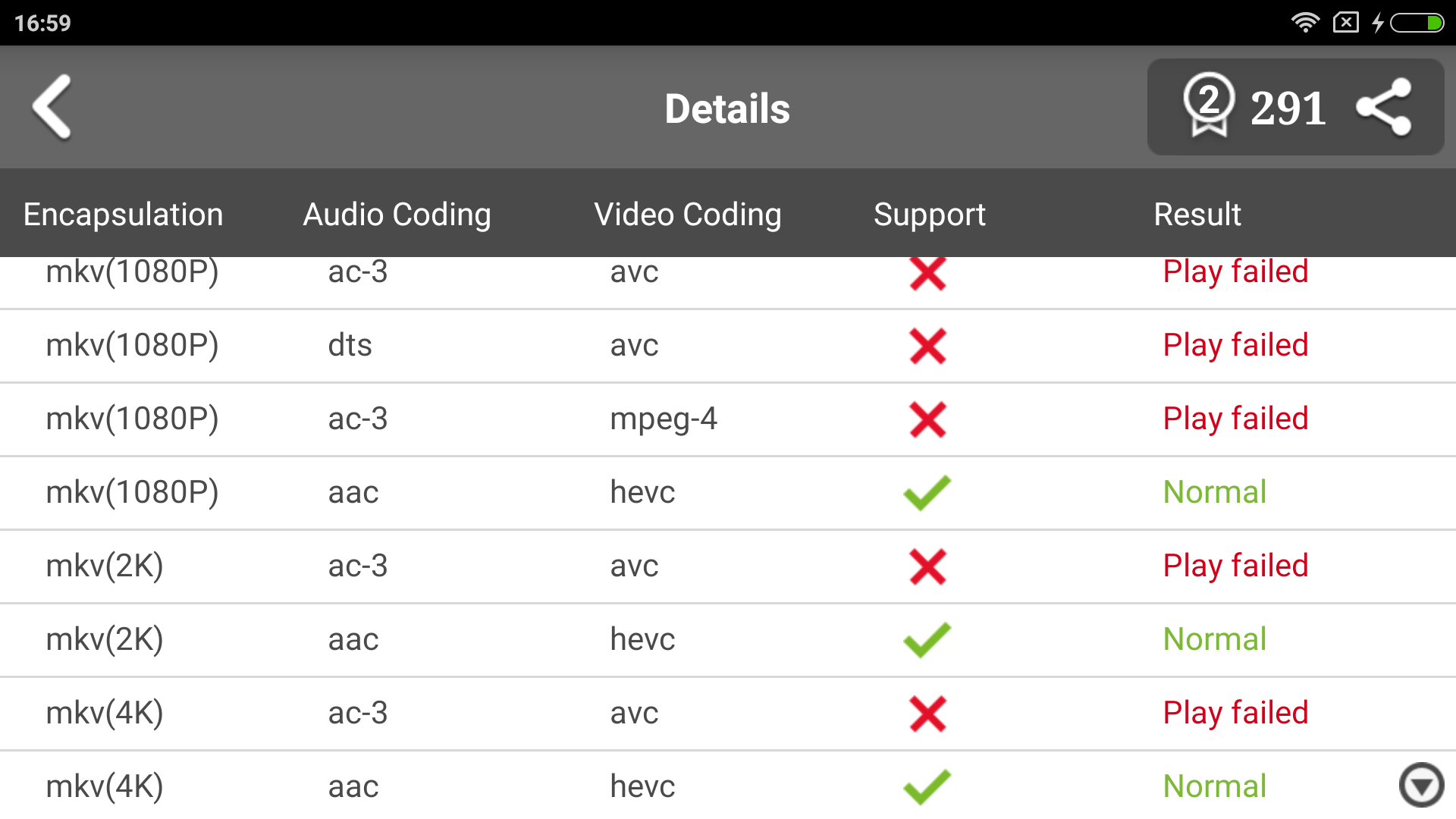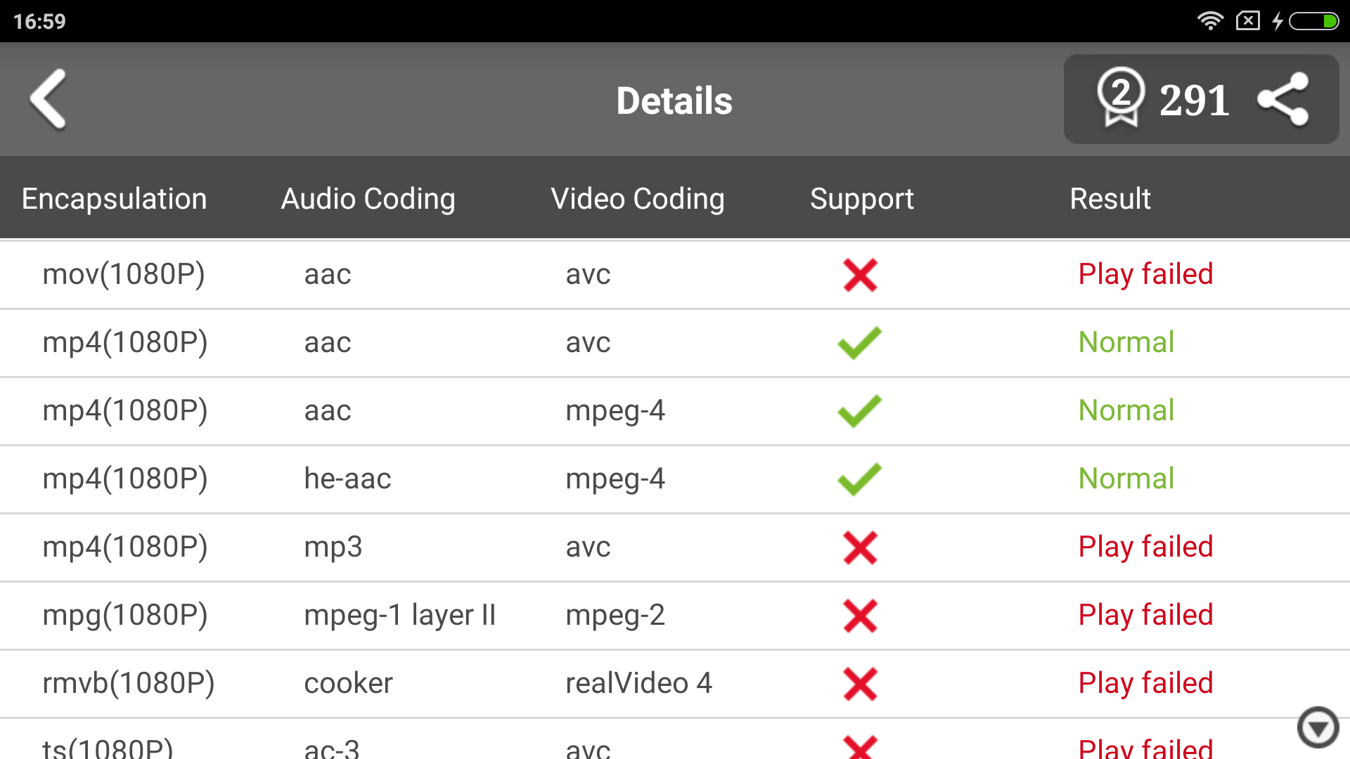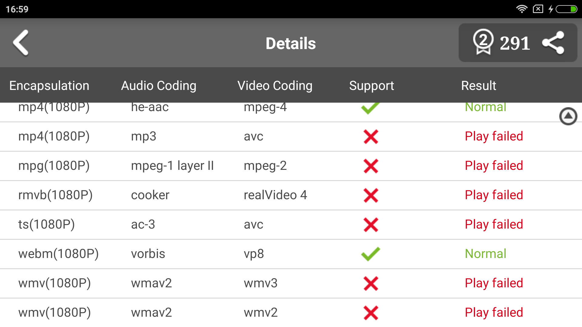 Продолжая тестирование программной части, проведем быструю проверку гаджета на «всеядность» различных форматов видео с помощью классического теста в AnTuTu Video Tester.