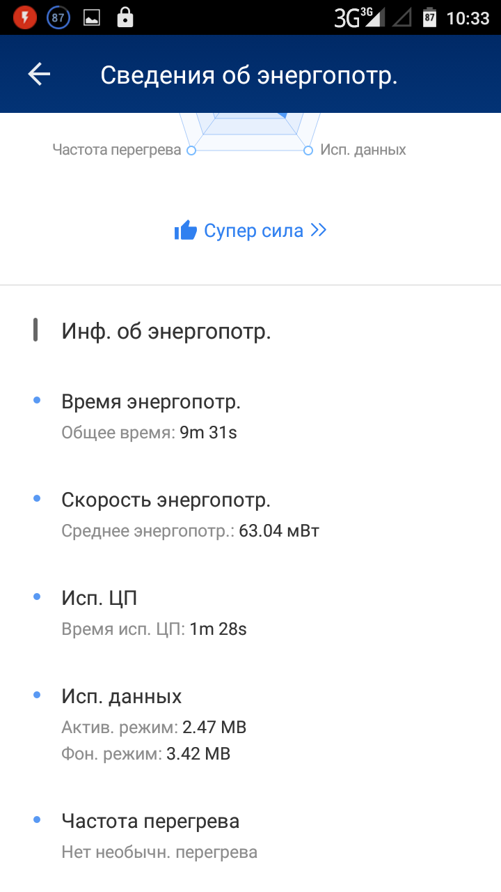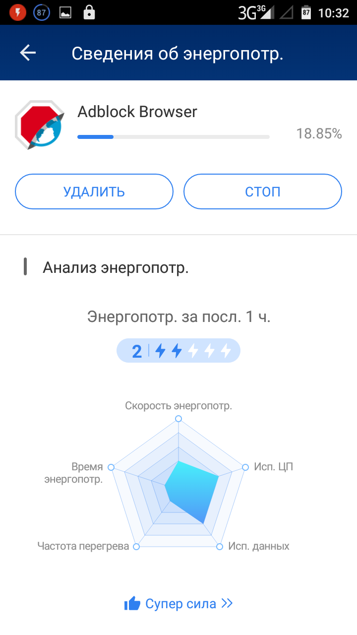 AFWall+ потребляет в пределах 86 Мбайт, нагружая процессор на 0.1%. Аккумулятор проседает на 18% со скоростью энергопотребления в 63 мВт. Средние такие показатели.